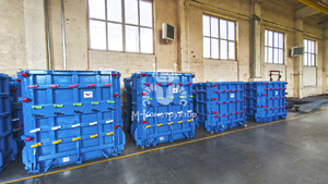 Борта форм установлены на силовую раму и подвижны, что обеспечивают шарниры. Такая конструкция ускоряет процесс формования и делает эксплуатацию удобнее.